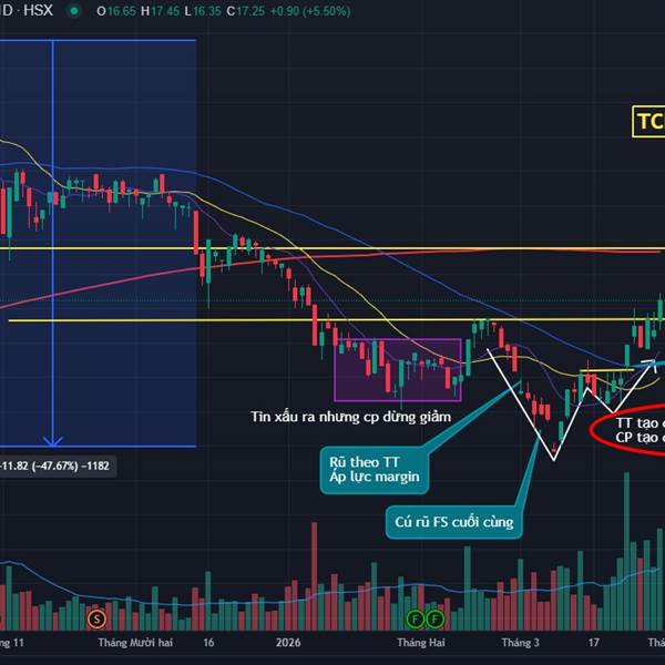 - Tin khởi tố + thị trường chung xấu → cổ phiếu giảm sàn 5 phiên.
