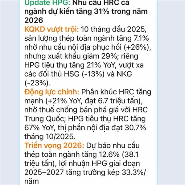 HPG ngày nào cũng có thông tin tốt đẹp! Cứ làm ra Sản phẩm thật. Xã hội luôn ghi nhận. Các cố đông họ cũng nhận rõ điều đó