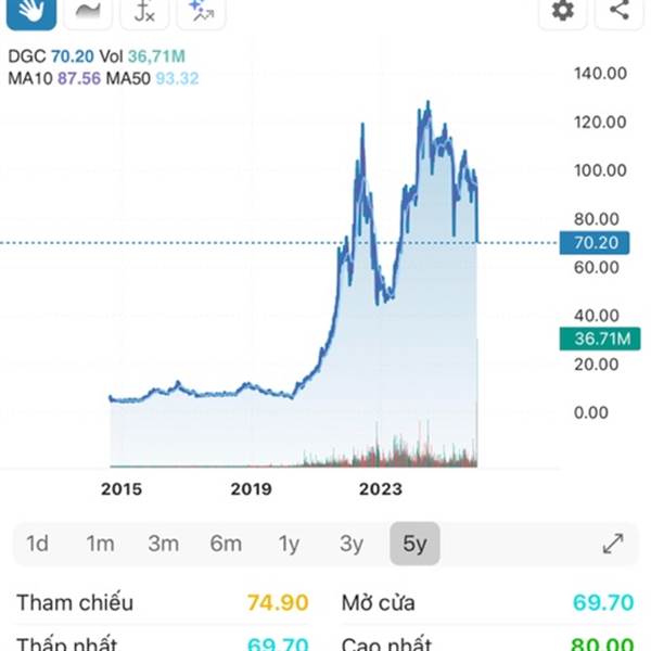 Năm 2015, DGC lên sàn với giá 10k. Sau 10 năm giá 70k tăng gấp 7 lần. Nếu nó về xuống 20k thì tớ vẫn nhời 2 lần. Đúng là không dại nào giống dại nào. Lỗ là do lòng tham!