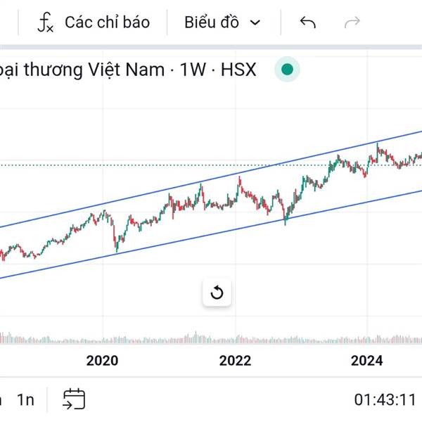 Chu kỳ tầm 4 tháng (1 Quý) con VCB này từ đáy lên vượt đỉnh sau đó giảm dần về gần đáy trước.
