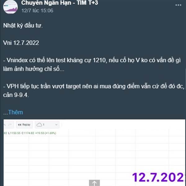 - Vnindex chạm mốc 1210 như đã dự đoán từ lâu và mình còn nhắc lại nhiều lần. Mình sẽ chốt lời vào phiên nay chứ ko mua mới. Tất nhiên là chưa có điểm bán.