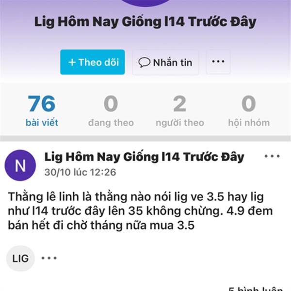 Tôi chơi LIG vì tôi thích con số 13.nó theo tôi từ bé và tôi tin LIG sẽ giúp tôi đổi đời,nhịp vừa rồi tôi chốt lãi ở 5,3(cảm thấy đủ).nó về dưới giá 4,thậm chí có thể 3,5 là 1 món quà. Ae cứ từ từ ,k ...