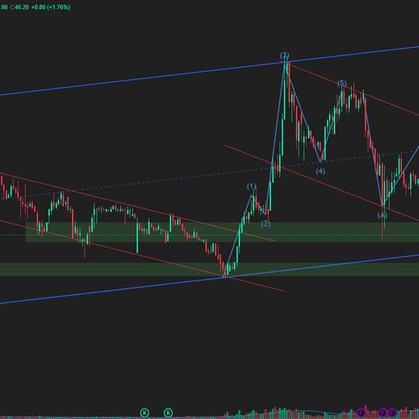 ACV đang trong xu hướng giảm trung hạn sau khi hoàn thành sóng tăng, hiện giá rơi về vùng hỗ trợ mạnh 44–46 trùng trendline dài hạn và có dấu hiệu “sell climax” với volume tăng đột biến.