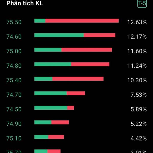 FPT: 5 phiên gần nhất khối lượng tập trung ở 74.6 đến 75.7