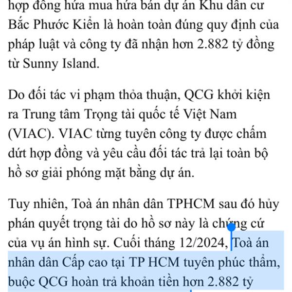 Sao nhiều bác nghi ngờ khả năng QCG đòi lại phước kiển vậy? Toà án tp HCM đã tuyên phước kiển thuộc về QCG. Hợp đồng mua bán trước đó là vô hiệu. QCG phải nộp 2882 tỷ thi hành án. Như vậy dự án phước ...Thêm