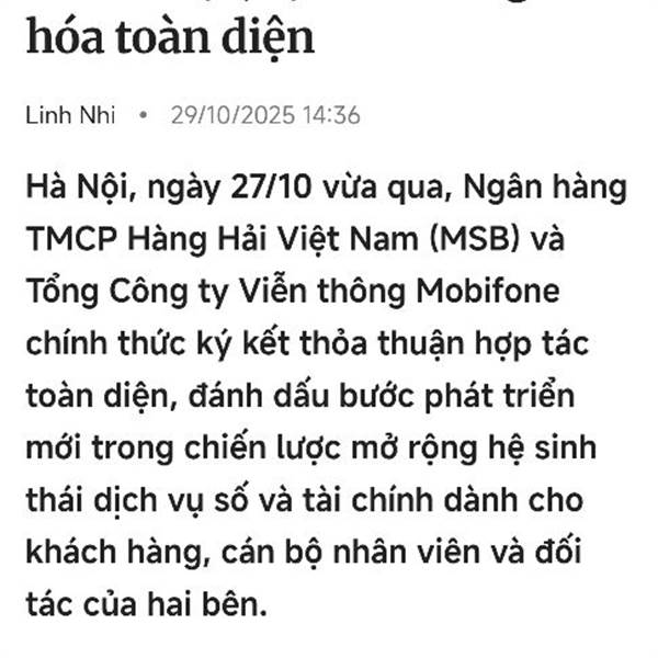 BCTC hợp nhất quý 3/2025 cho thấy Ngân hàng TMCP Hàng hải Việt Nam (HOSE: MSB) lãi trước thuế hơn 1,587 tỷ đồng, tăng 31% so với cùng kỳ năm trước, nhờ tăng trưởng thu nhập cốt lõi và kinh doanh ngoại hối.