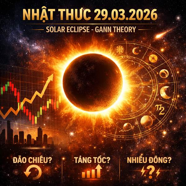 ✨ Sự kiện Nhật thực (Solar Eclipse) - Ngày 29/03/2026 Hôm nay, đúng ngày 29/03/2026, có một sự kiện Nhật thực một phần diễn ra. Trong phương pháp Gann, Nhật thực là một "Time Trigger" (Ngòi nổ thời gi...Thêm