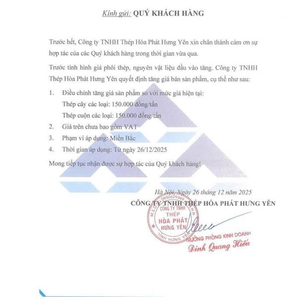 Trong thông báo mới đây, Tập đoàn Hòa Phát (HoSE: HPG) cho...Thêm