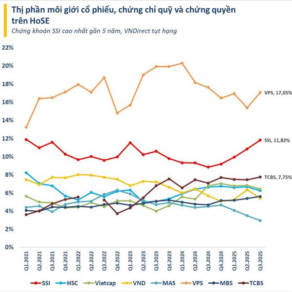 Trong quý 3, VND ghi nhận mức lợi nhuận kỷ lục của các quý lên đến 929 tỷ đồng, tăng gấp 152% nhờ lợi nhuận từ tự doanh cao nhất lịch sử, hoàn thành 91% lợi nhuận kế hoạch năm