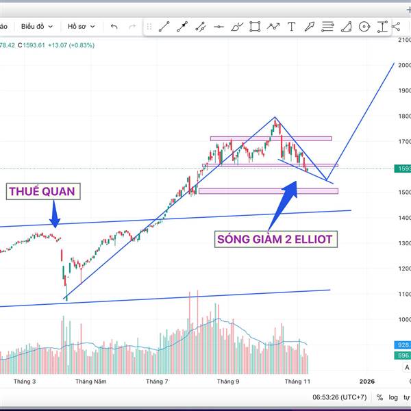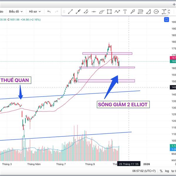 Nhận Định: VỀ HỖ TRỢ 1600 Phiên qua mở đầu với một gap tăng nhờ thông tin tích cực từ thuế quan, nhưng nhanh chóng quay đầu giảm đỏ khi lên vùng cản 1700. Cuối phiên V...Thêm