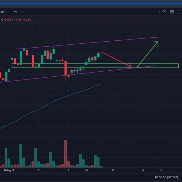 ▪️Giá vừa break kênh biên độ sidewway vùng giá ( 956 - 1080 )