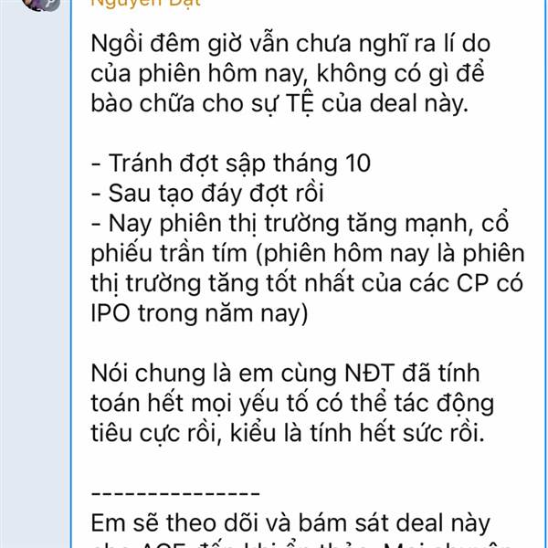 Sự dối trá, trơ trẽn đến đáng sợ. Trc và sau lên sàn như 2 người khác lạ. Trc thì blabla tin tốt từ nội bộ, xác xuất lỗ 0.1%