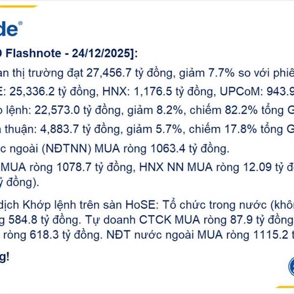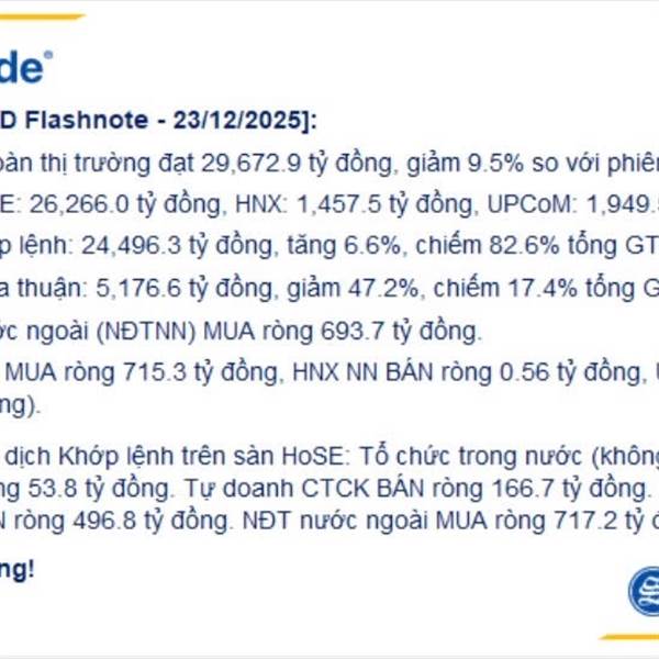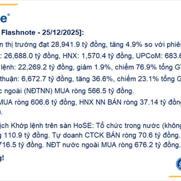 TỔNG KẾT THỊ TRƯỜNG 26/12/2025 VN-Index giảm 13.05 điểm (-0.75%), đóng cửa tại 1.729,80 điểm. Tổng giá trị giao dịch trên 3 sàn đạt 35.654,3 tỷ đồng, tăng +22,9% so với phiên liền trước