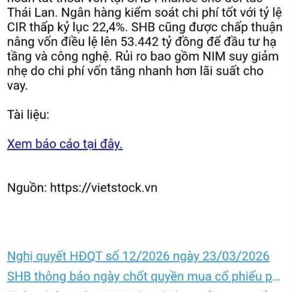 Dựa trên các thông tin thị trường mới nhất tính đến hôm nay, thứ Sáu ngày 27/03/2026, kỳ vọng của bạn về việc cổ phiếu SHB đóng cửa ở mức giá trần 16.2 ...Thêm