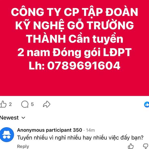 Tin đồn: tuyển công nhân liên tục vì đơn hàng đầu năm nhiều, ae tự tin nắm giữ!