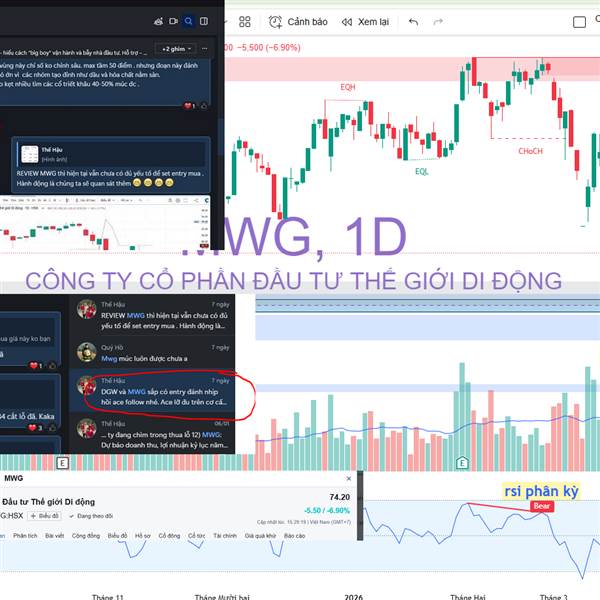 MWG về 70 là mua? Đúng Hay sai MWG gãy cấu trúc tăng, RSI phân kỳ rõ ràng mà vẫn lao vào “bắt đáy” thì không phải do thị trường ác — mà do thiếu kiến thức. Giá rẻ không có nghĩa là cơ hội. Thứ cần nhì...Thêm