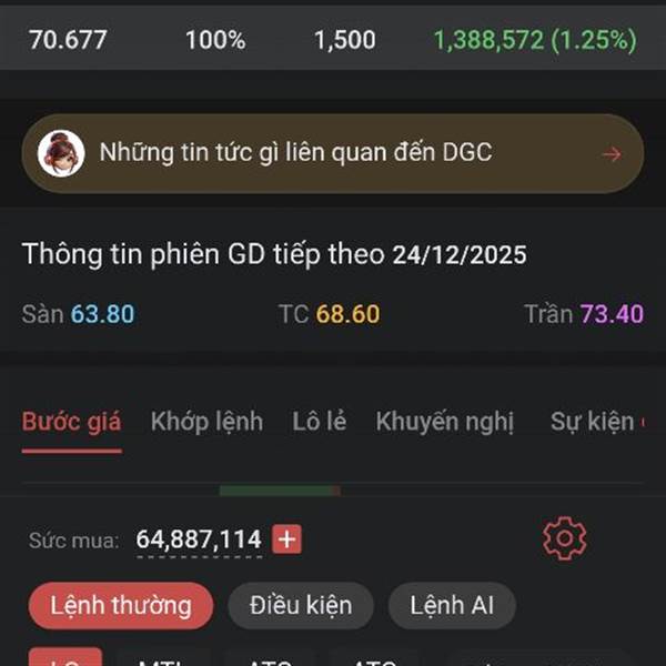 cá nhân hôm thứ 6 vào hàng khá nhiều, nên áp lực chốt lời khá mạnh, nhưng vẫn ko sàn là ok, ai đánh t+ thì cứ chốt, ai cầm cơ bản thì cứ giữ, biết đọc bctc 1 chút thì sẽ thấy DGC vẫn oke chả có vấn đề...Thêm