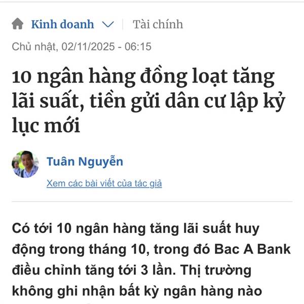 Tôi chỉ nói và bàn về những thứ "sẽ" xảy ra trong tương lai, chứ còn đã xảy ra rồi thì bắt đầu bới móc phân tích thì chả giải quyết được gì. Lãi suất gửi (huy động) đang tăng dần sẽ kéo theo lãi suất ...Thêm