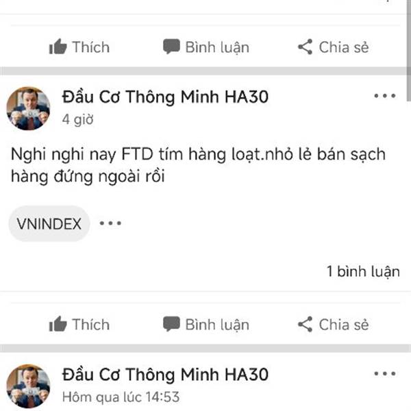 Nghi nghi nay FTD tím hàng loạt.nhỏ lẻ bán sạch hàng đứng ngoài rồi