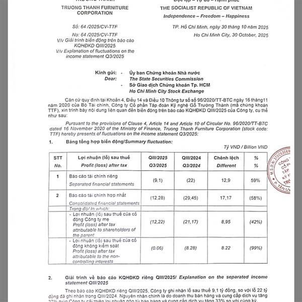 Bctc Q3: lỗ -12 tỷ. Cùng kỳ Q3/2024: lỗ -29 tỷ