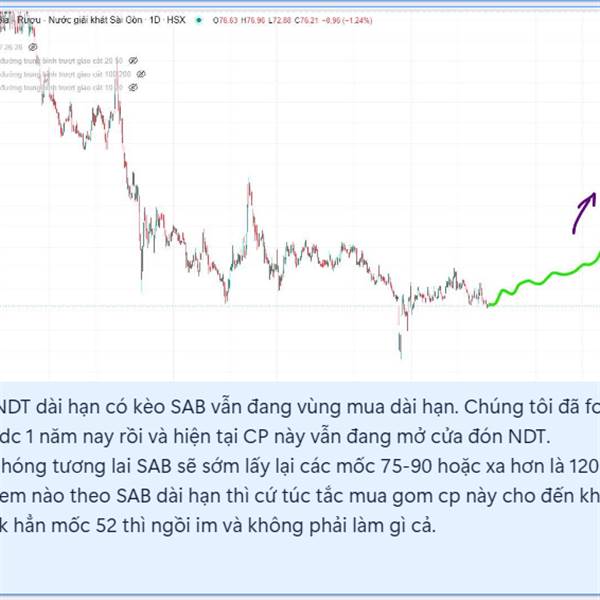 Với NDT dài hạn có kèo SAB vẫn đang vùng mua dài hạn. Chúng tôi đã follow SAB dc 1 năm nay rồi và hiện tại CP này vẫn đang mở cửa đón NDT.