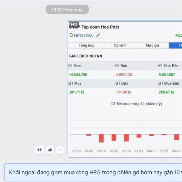Hôm nay HPG được khối ngoại gom ròng hơn 11 triệu cp.