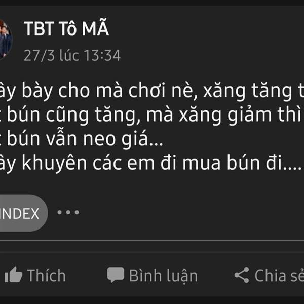 Khầy bày cho mà chơi nè, xăng tăng thì bát bún cũng tăng, mà xăng giảm thì bát bún vẫn neo giá...