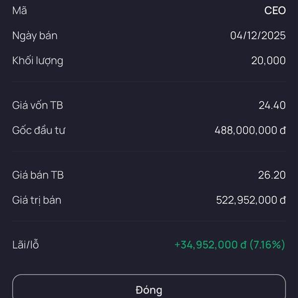 Thỉnh thoảng vào một lệnh cho vui lãi lỗ thì vẫn chốt.Giờ thì lại full tiền
