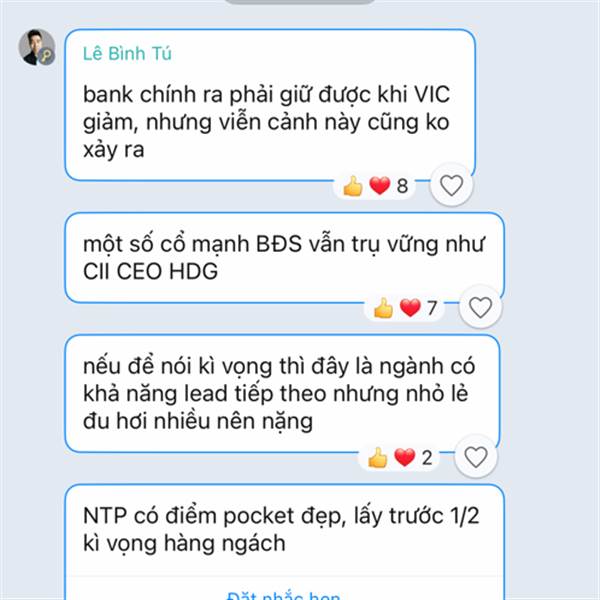 Tú ats Cutloss một đống bđs giờ quay ra chim lợn.Nói thẳng luôn bđs đã tích luỹ đủ éo đâu mà đòi lên.Đánh chứng khoán kì vọng rồi nó k lên quay ra chửi vl thật