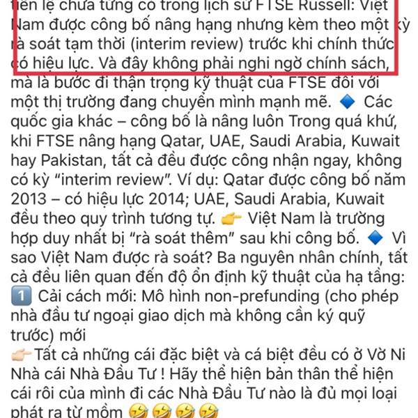 Phong ba bão táp … hôm tôi có chia sẻ bài này nhưng không hợp lắp thì phải nên bị trái chiều! Được công bố nâng hạng “” nhưng kèm điểu khoản “ thị trường Mới Nổi (( Thứ cấp ))) tức là chính thức check...Thêm