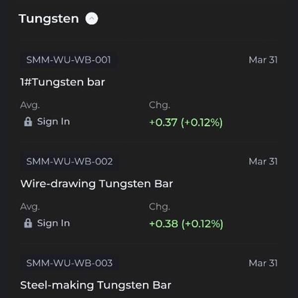 Giá Vonfram ngày 31/03 trên TT Shanghai tiếp tục tăng 0.37%.