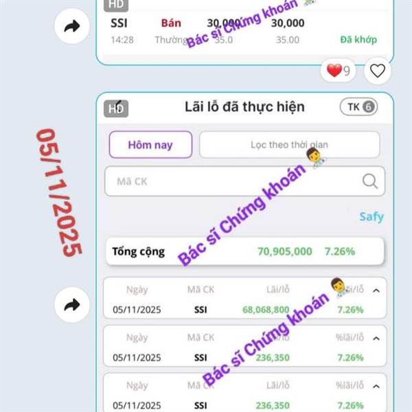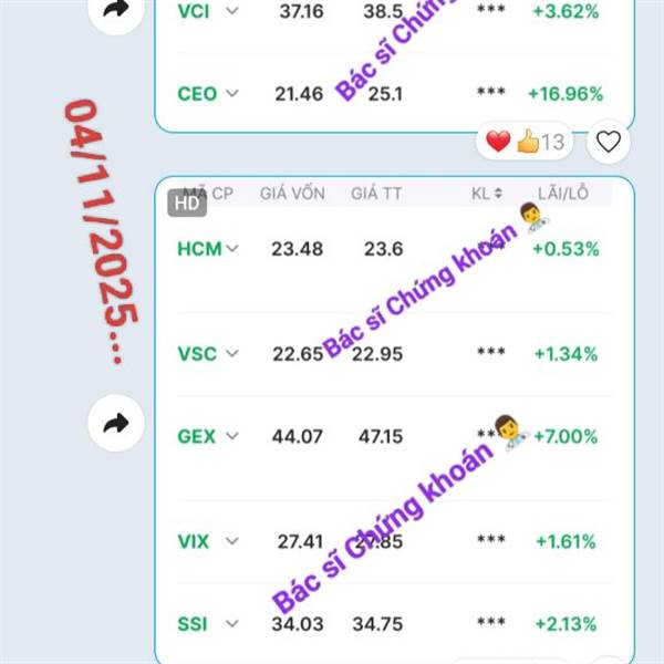 DXG mới mua T+ mà lại tím à, hẳn là vị thế mới bắt hôm qua cho chim lợn khỏi ý kiến. Mà cái ảnh bìa video DXG nó to lù lù đấy thây. Hàng T1; T2,5 lãi +9% rùi. 💵 _DIG tím; PDR +3,14%; HDC +1,94%, CEO x...Thêm