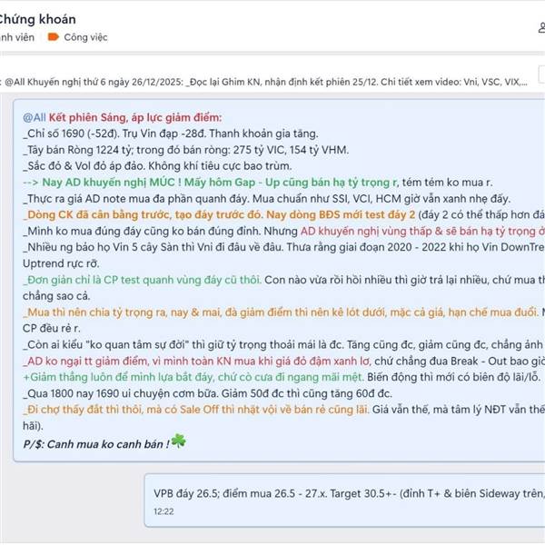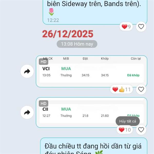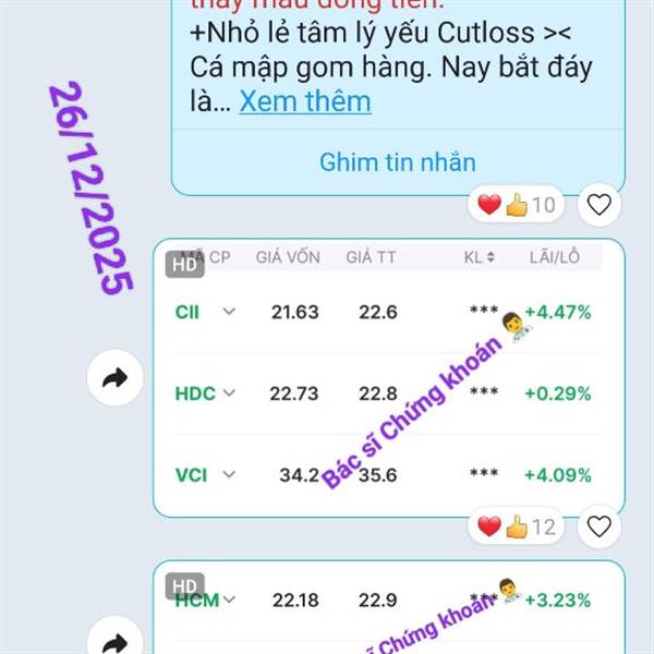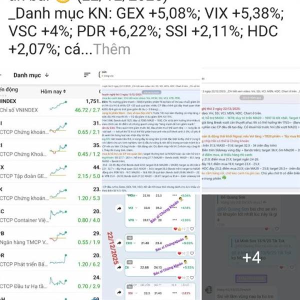 Í sời, mua giá rẻ & ngồi im, mấy a Lái tự an bài 😁 (22/12/2025) _Danh mục KN: GEX +5,08%; VIX +5,38%; VSC +4%; PDR +6,22%; SSI +2,11%; HDC +2,07%; các mã khác xanh nhẹ. 💵 _KN chi tiết đã show cho ae t...Thêm