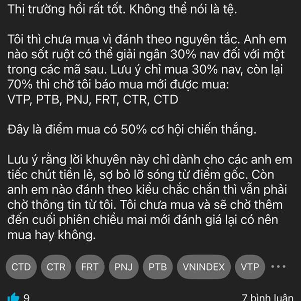 20 bài thì 19 bài chim lợn khi thấy thị trường hồi xanh.