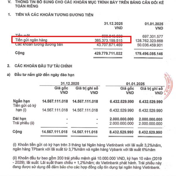 Tiền gửi ngân hàng (không kỳ hạn): 385ty