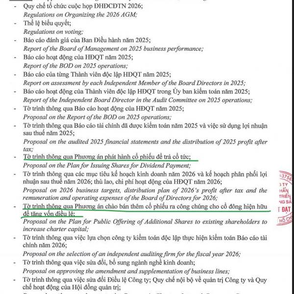 Hôm trước gửi thư mời họp thì kế hoạch phân phối lợi nhuận 2025 là cổ tức : Cổ phiếu + Tiền