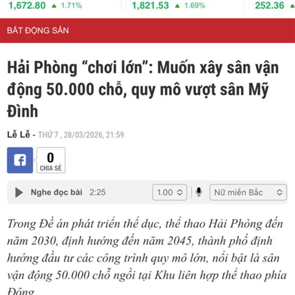 Hải Phòng “chơi lớn”: Muốn xây sân vận động 50.000 chỗ, quy mô vượt sân Mỹ Đình