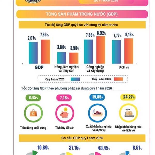 GDP quý I/2026 tăng 7,83%, cho thấy nền kinh tế vẫn đang hấp thụ tương đố...Thêm