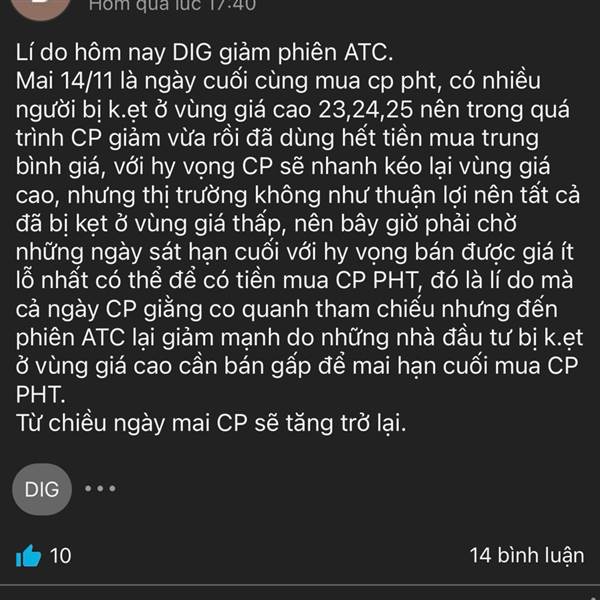 Lí do hôm nay DIG giảm phiên ATC.
