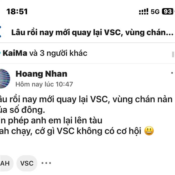 Lâu rồi nay mới quay lại VSC, vùng chán nản của số đông.