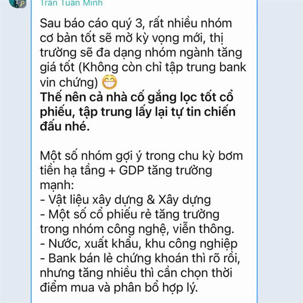 20/10 ae bán nó chửi ae *** bán trong hoảng loạn để giờ lỗ thêm 10 15% nữa :))))) còn bắt đáy nữa chứ :)))) *** vcl *** dám mở chát mấy hôm rồi :)))))