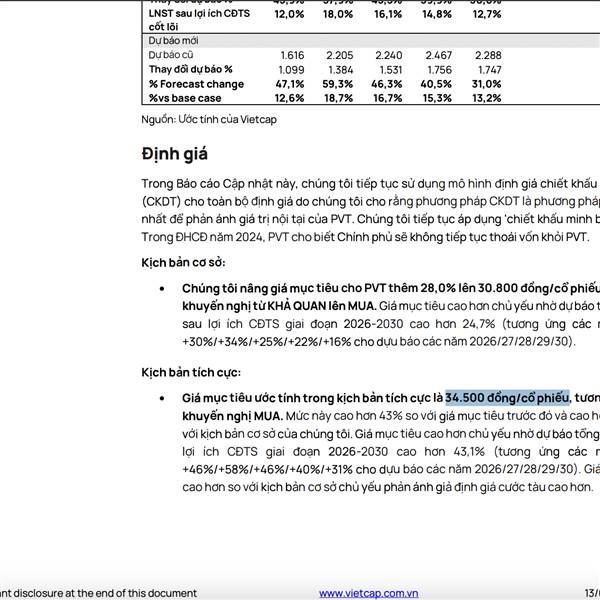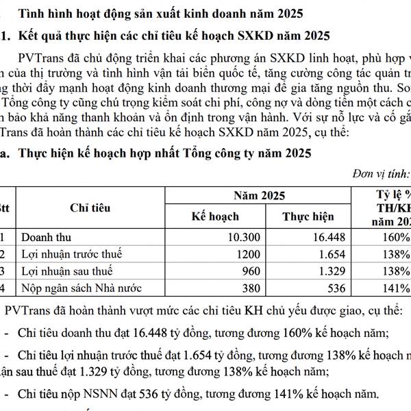 Lưu ý rằng BLĐ PVT luôn rất thận trọng, lúc nào cũng đặt kế hoạch thấp so với thực tế thực hiện. Đơn cử như năm 2025, Doanh thu t...