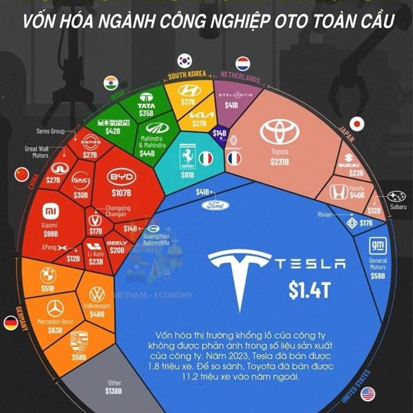 Tính đến cuối tháng 12 năm 2025, vốn hóa thị trường của Tesla và VinFast có sự chênh lệch rất lớn, phản ánh vị thế khác biệt của hai hãng trên thị trường xe điện toàn cầu: