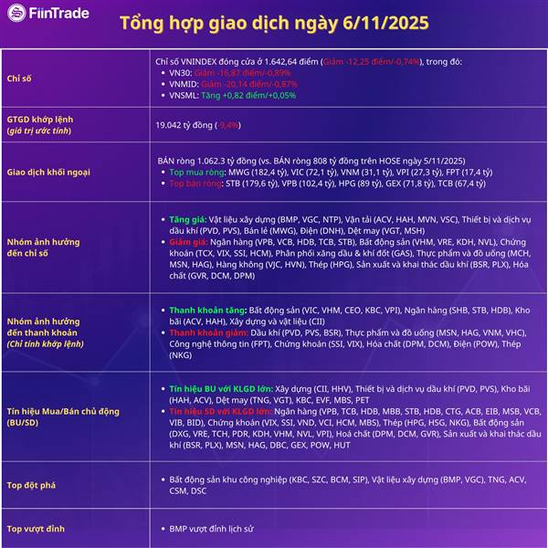 ✅ NHẬN ĐỊNH THỊ TRƯỜNG CHỨNG KHOÁN NGÀY 06-11-2025 : THANH KHOẢN THỊ TRƯỜNG MẤT HÚT.