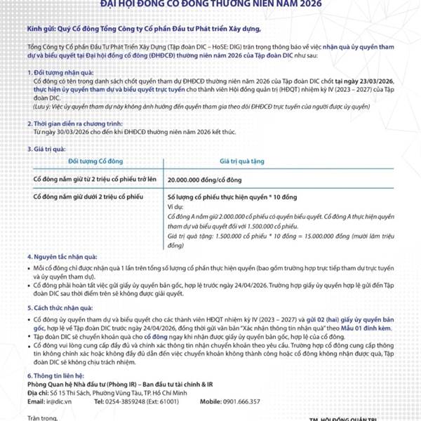 Ai tham dự trực tuyến hoặc ủy quyền thì đc 10 đồng/cp nhưng phải gửi giấy tờ hợp pháp về công ty trước ngày 24/4