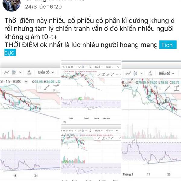 Thời điệm này nhiều cổ phiếu có phân kì dương khung d rồi nhưng tâm lý chiến tranh vẫn ở đó khiến nhiều người không giám t0-t+