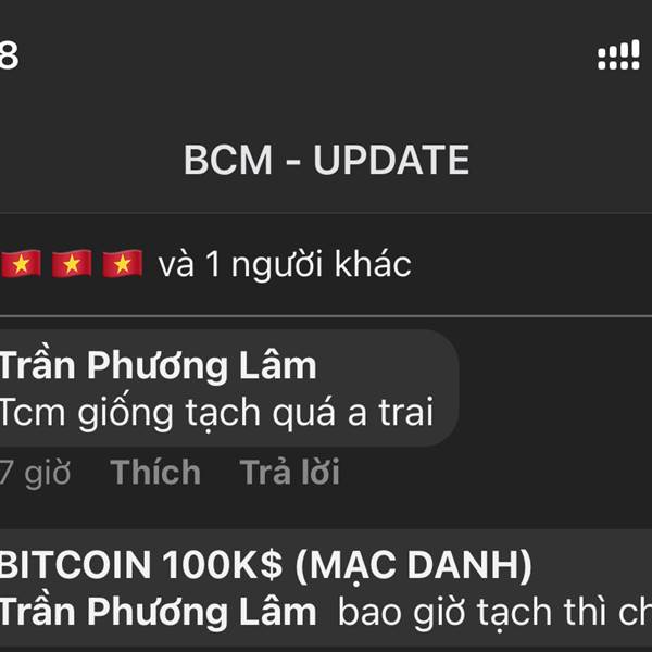 Cẩn thận thằng súccc vật lùa gà mới nổi này nhé :))) Bitcoin 100k là thấy nguu rồi :))) Hô Tcm 170 bền vững xong giờ bảo chạy :))))) Nghe lời mõm của m có ngày bán nhà =)))))
