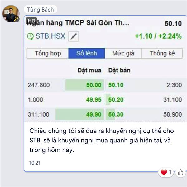 Khuyến nghị STB quanh vùng 49-51 ngày hôm qua. Chúng ta có thể nhìn câu chuyện LPB dưới sự điều hành của ông Thụy từ đầu 2021 đến giờ cũng phải tăng 7 lần. Tất nhiên không thể kỳ vọng quá cao nhưng nế...Thêm