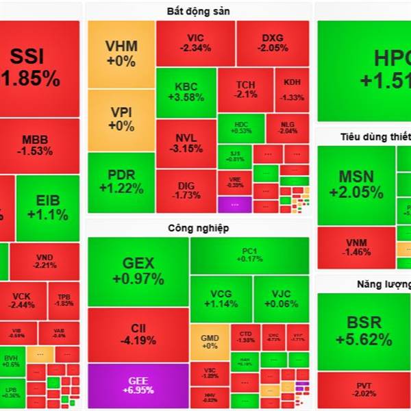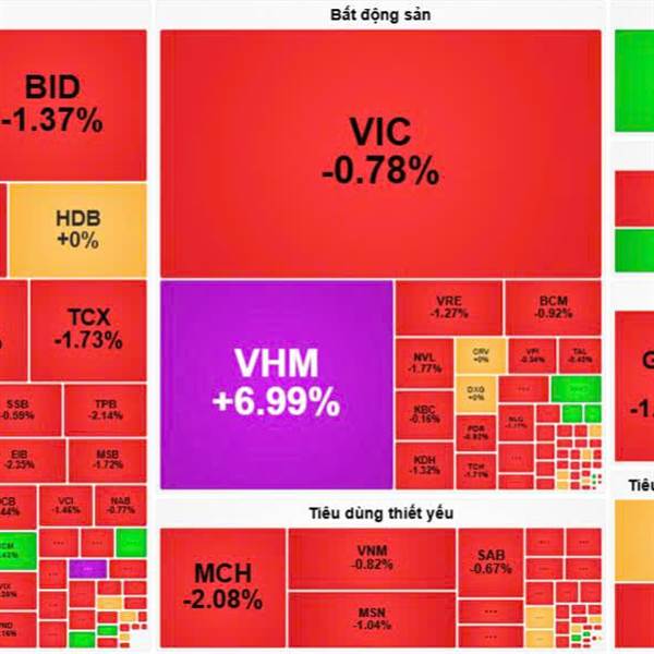 Một số trụ lớn nhóm Bank, Dầu khí giúp neo giữ điểm số trong khi độ rộng TT nghiêng mạnh về bên bán khi HSX có 189 mã đỏ...Thêm