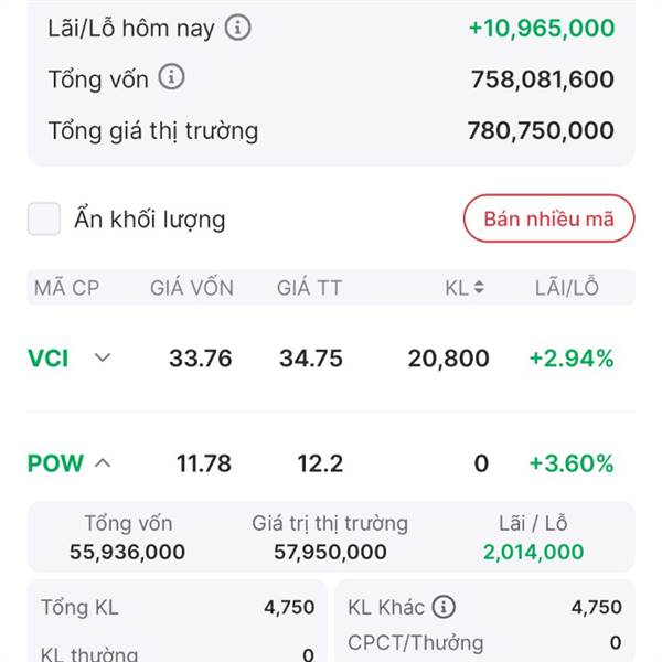 Quyết định sút nốt pow, chờ cổ tức về và nộp tiền mua, để lượng nhỏ theo dõi, cơ cấu all in VCI nhịp này.